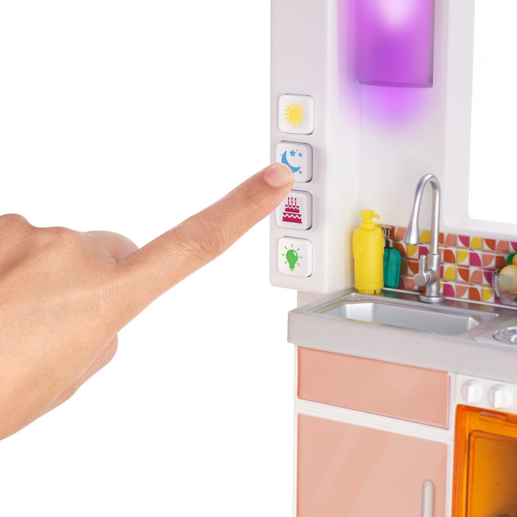 В набор также входят более 100 аксессуаров, включая шесть ароматизированных предметов: диван, кровать, стол, стульчики, гриль для барбекю, плита, холодильник, кухонные принадлежности и несколько видов продуктов питания, собака с миской, котенок, ароматизированные кусочки еды и аксессуары на тему вечеринки, вдохновляющие на настоящий праздник! Дети от 3 лет могут разыгрывать бесконечные истории с Домом мечты Barbie Celebration 60th!