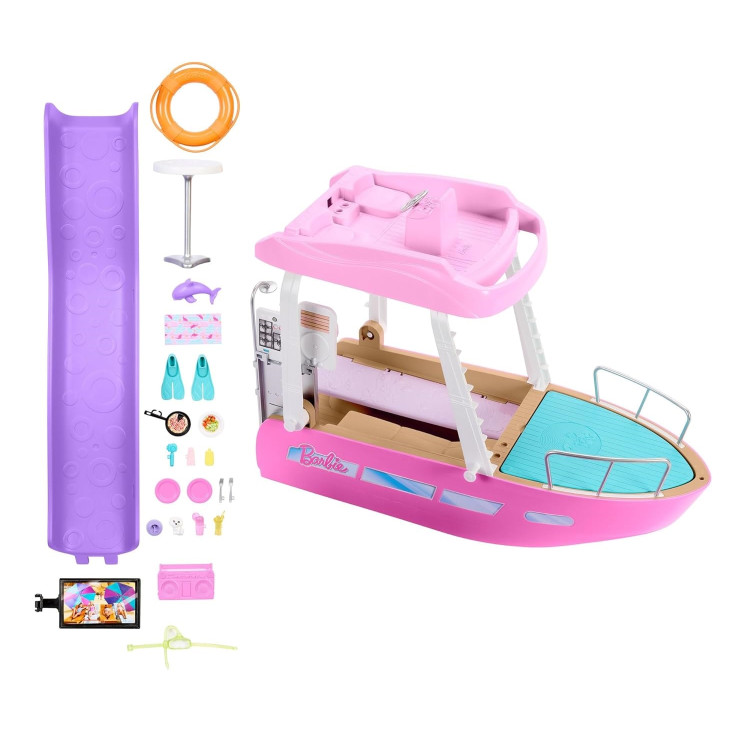 Создавайте незабываемые приключения вместе с Лодкой мечты Барби! Этот увлекательный игровой набор Barbie Dream Boat имеет более 20 аксессуаров и шесть различных игровых зон, включая бассейн и горку – все это создано для веселых игр на тему океана. Благодаря размерам 110 см в ширину и 40 см в высоту, кукла Барби имеет достаточно места, чтобы пригласить друзей и повеселиться на солнце!