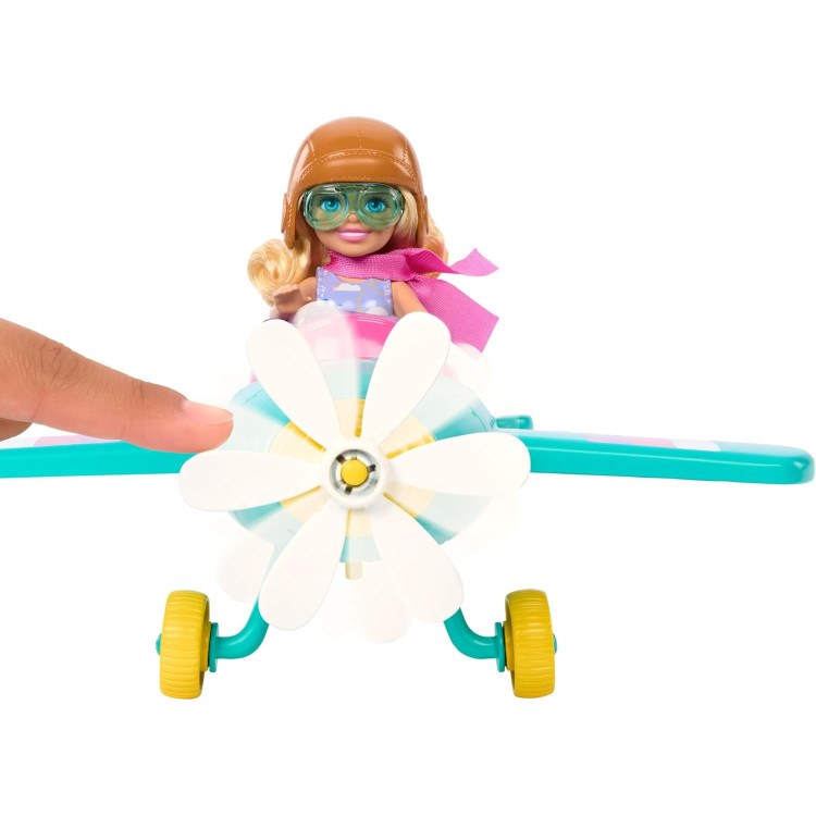 Играя с набором Barbie Chelsea Can Be Plane, включающим куклу Челси, самолет, ее верного щенка и 5 аксессуаров, дети могут открыть для себя безграничные возможности мира. Кукла-пилот Челси готова к новым приключениям со своим самолетом. Просто толкайте самолет, вращая пропеллер в форме ромашки, и с помощью воображения дайте Челси возможность совершить свой первый полет. Красочный самолет имеет два сиденья и подвижные колеса, а его вращающийся пропеллер открывает дорогу к приключениям в воздухе. Чтобы добавить еще больше атмосферы, на заднюю часть самолета можно прикрепить флажок Челси. Маленькая кукла Челси всегда готова к путешествиям, и ее неизменный стиль поражает – милая юбка с рисунками облаков и самолетов, яркая обувь, шлем на светлых волосах и розовый шарф. Кроме того, в наборе есть дополнительные аксессуары, такие как авиационные очки для Челси и ее верного щенка, чемодан и лист с наклейками для украшения багажа и самолета, которые помогают детям еще больше погрузиться в магию ролевой игры.