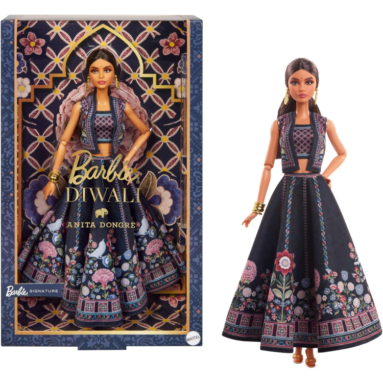Впервые Barbie с гордостью представляет праздничную куклу к Дивали, созданную в сотрудничестве с выдающейся индийской кутюрье Анитой Донгре. Анита Донгре, дизайнер и основательница всемирно известной модной империи, создала эту куклу в партнерстве с Mattel Creations, превратив первую совместную коллекционную Barbie для Дивали в символ мастерства, культурного наследия и женщин-ремесленниц Индии, которых она без устали поддерживает. Эта особенная коллекционная модель олицетворяет красоту и глубокий символизм Фестиваля огней, вбирая в себя дух традиций, современной элегантности и мастерства, присущей дизайнеру. Кукла Barbie появляется в роскошном образе «Лунный свет» — ансамбле, состоящее из топа чоли, цветочного жилета крти и пышной юбки лехенги, украшенной георгинами, жасмином и индийским лотосом. В этих цветах зашифровано послание силы, красоты и победы света над тьмой. Как и каждое творение Аниты Донгре, наряды являются настоящим трудом любви и изысканным произведением искусства, в котором сочетаются традиции и современные силуэты. Образ довершают золотые туфли, серьги и браслеты, мягко сверкающие в свете и подчеркивающие праздничное величие момента. Упаковка куклы стилистически отражает яркие акценты наряда, продолжая общую эстетику торжества и духовной глубины Дивали.