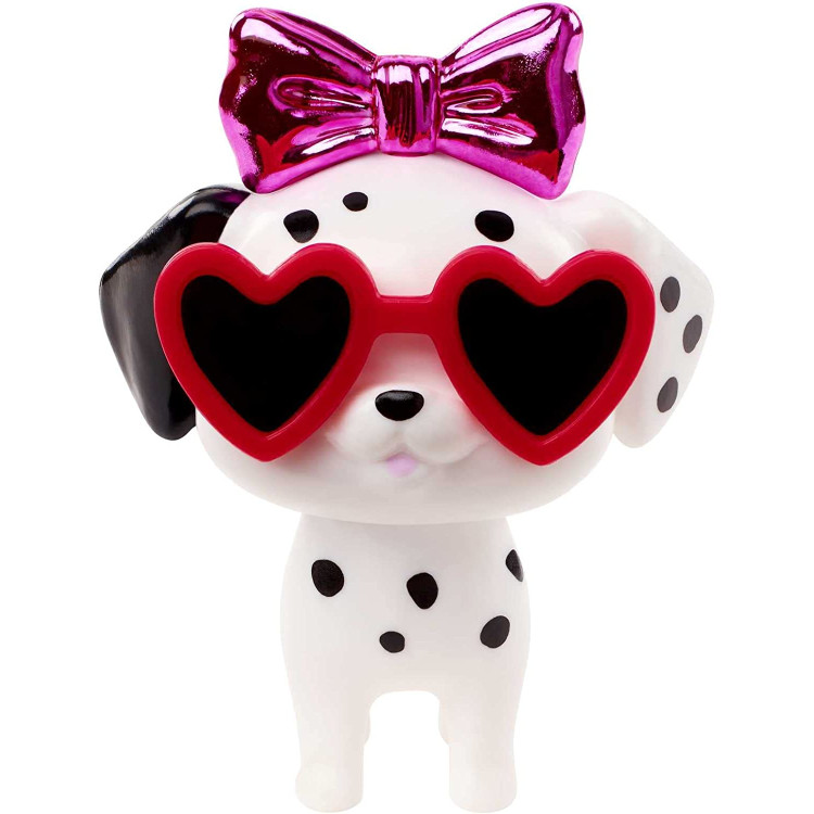 - питомец - домашний щенок далматинца с солнцезащитными очками в форме сердца, розовым бантом.