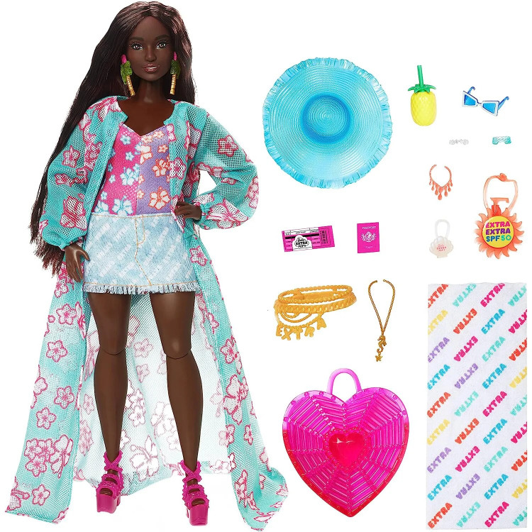 Кукла Барби готовится к прекрасному дню на пляже! Благодаря своему шарнирному телу эта подвижная кукла готова к любым приключениям под солнцем. Она демонстрирует свой уверенный пляжный стиль с необычным тропическим купальником, джинсовой трендовой юбкой, модной накидкой до пола и розовыми босоножками на платформе. Но главный акцент – в ЭКСТРА деталях! Кукла Барби поставляется с 15 аксессуарами, такими как тропический напиток, стильная пляжная шляпа, великолепные серьги с мотивами пальмовых деревьев и модные очки. Все эти аксессуары вдохновляют на самовыражение и придают веселый стиль. Кроме того, кукла имеет большую пляжную сумку в форме сердца, багажную бирку с образами раковин, паспорт, билет на самолет и даже стильный солнцезащитный брелок. С этими аксессуарами Барби будет готова к удовольствию на пляже и созданию незабываемых воспоминаний.