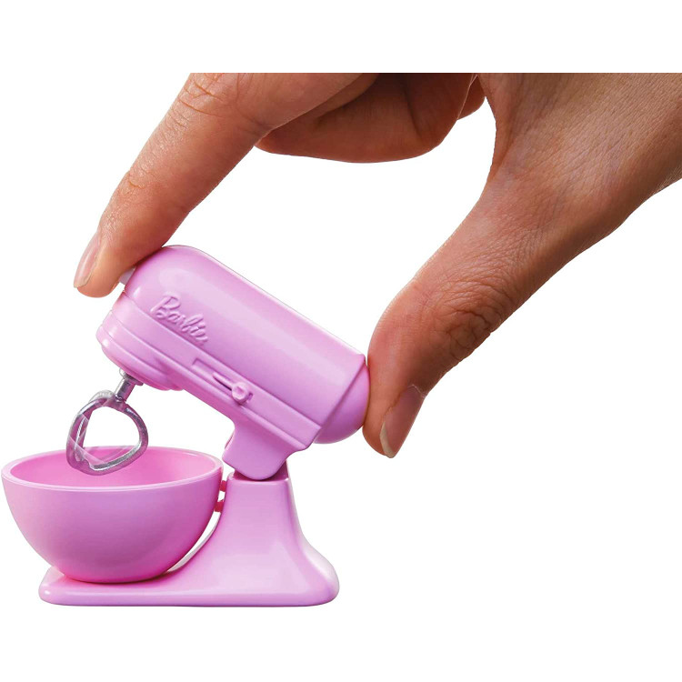 Начните игру с помощью этого кухонного набора Барби с духовкой, столом для приготовления, домашним котенком и аксессуарами, посвященными кулинарии и выпечке. Духовка открывается и закрывается для реалистичной игры, а миксер вращается нажатием кнопки. Аксессуары, включая инструменты для приготовления пищи, противень для выпечки, руковицу для духовки и т.д., можно хранить на полке. Кукла Барби одета в комбинезон и стильные шорты. Дети могут помочь кукле Барби смешивать и печь, открывать духовку, чтобы положить внутрь лакомство и хранить необходимые вещи на кухонных полках. Аксессуары вдохновляют на игру, а домашний котенок помогает кукле Барби создавать ее шедевры!