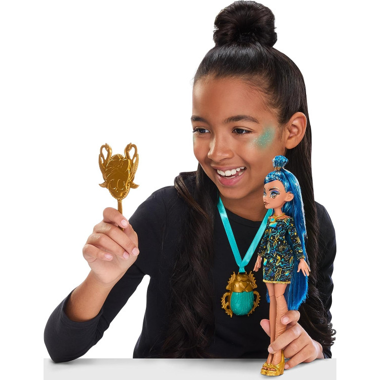 Кукла Клео Де Нил наслаждается своим прекрасным сном в саркофаге, созданном исключительно для королевы! Она представлена с детализированным золотым кейсом, идеально подходящим для хранения куклы и ее сокровищ: золотых татуировок, ожерелья со скарабеем и хайлайтером, а также зеркалом. Клео Де Нил поражает своим непревзойденным стилем, нося платье с принтом иероглифов в сочетании с ужасающе крутым ожерельем и туфлями на высоком каблуке с открытым носом. В набор красоты также входит соответствующее ожерелье детского размера. Подвеска-скарабей открывается, открывая мерцающий хайлайтер. Дети могут персонализировать свой внешний вид с помощью входящих в комплект татуировок с иероглифами. Они смогут наслаждаться игрой, используя королевские аксессуары куклы Клео Де Нил. Боже мой… саркофаг с потрясающей скульптурой сам по себе достоин внимания. Все помещается внутри для удобного хранения и транспортировки: кукла, ее роскошное ручное зеркало и все ее косметические сокровища. Набор Cleo De Nile Golden Glam Case сочетает в себе креативность и удовольствие от стиля в одном великолепном наборе. Просмотрите другие куклы и игровые наборы Monster High, чтобы получить еще больше удивительно-прекрасных подарков. Кукла полностью шарнирная.