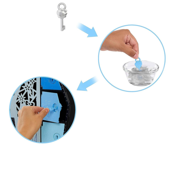 Кукла Frankie Stein и ее модные сюрпризы сияют невероятно блестящими перламутровыми деталями в этом ужасающем издании Skulltimate Secrets! Откройте его шкафчик и найдите фантастические находки внутри. Сможете ли вы раскрыть все секреты? Возьмите четыре ключа и смойте их ужасающее покрытие на мгновение, а затем откройте все четыре соответствующих отделения, чтобы найти скрытые предметы. Распаковав коробку, используйте шкафчик в форме гроба, для рассказа невероятных историй, а также для хранения куклы Фрэнки Штейн и всех ее вещей и аксессуаров. Она имеет прямую подстриженную челку, металлические губы и блестящую бионическую ногу. Ее электрифицирована модные наряды подчеркивают ее уникальный шарм монстра и позволяют экспериментировать со стилями! Благодаря гибкости туловища, локтей, запястьям и коленям, вы сможете создавать невероятные монстратические позы. Skulltimate Secrets предлагает множество предметов, которые разыгрывают воображение и проявляют стиль: от пушистой палантины и повязки с острыми концами до палитры для макияжа и сумочки. Сочетайте их, чтобы создать много различных образов!